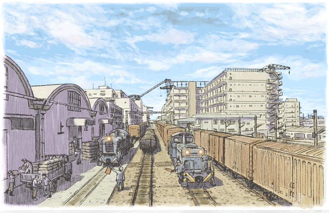 中央区晴海の50年前と現在。ここはかつて船運と陸上輸送の中継地点となる #東京都港湾局専用線 の荷さばき場でした。