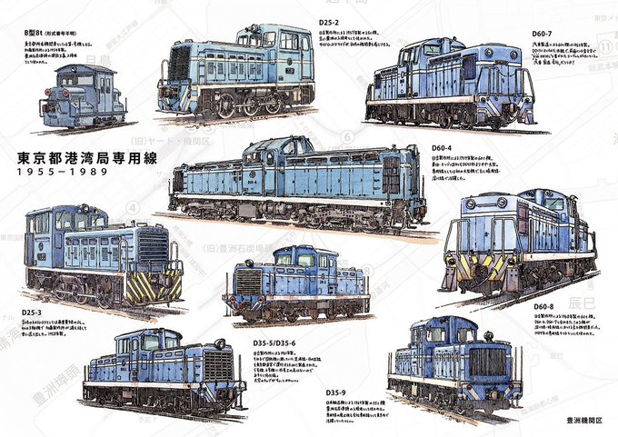 COMITIA122会場限定品は「東京都港湾局専用線」の専用機関車全9種イラストポスター(A2サイズ)を作ろうと考えています。格機関車の簡単な説明文もこれから入れます。自分で欲しくて作るものだけど、欲しい人いるのかな?