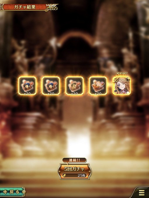 ガチャの演出変わったな。SS確定プラチナチケット使っても爆発演出が起きなくなった。