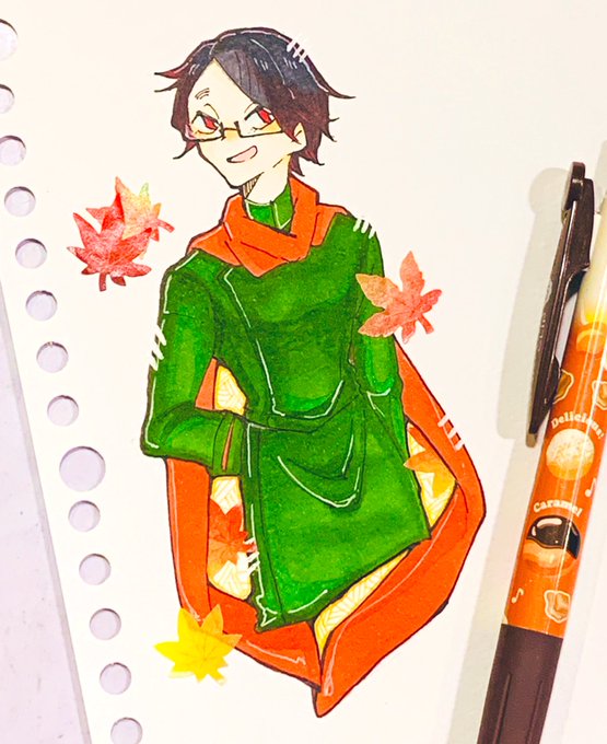 とりあえずこれね、結構前のなんだけど、秋分の日にあげた奴。サブタイトルにもある炎星は火星のことなんだよね。夜に赤く光ってるのがあるんだけど、それと燃えてる感じの紅葉でかけてるのよ!それでね、tn氏の軍服の色、つるばみ色っていう色なんだけど(文字制限により下に続く)