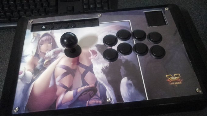前から欲しかったRAP.Nを買ってひゃっほーしてたら、天板交換できる類のアケコンじゃないことに気づき、色々調べてプラ板をカットして上から重ねられることに気づき、ようやく最近完成した。これで天板を描くという遊びは続けられる、余は満足じゃ。 #格ゲーキャラ描こうぜ