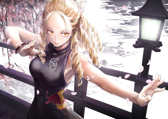 新キャラにかまけてて描くの忘れてた… ボンちゃんおめでとうございます。 以前描いていたかりんに急遽レッドブルマークとサガットを配置。 #格ゲーキャラ描こうぜ #EVO2019