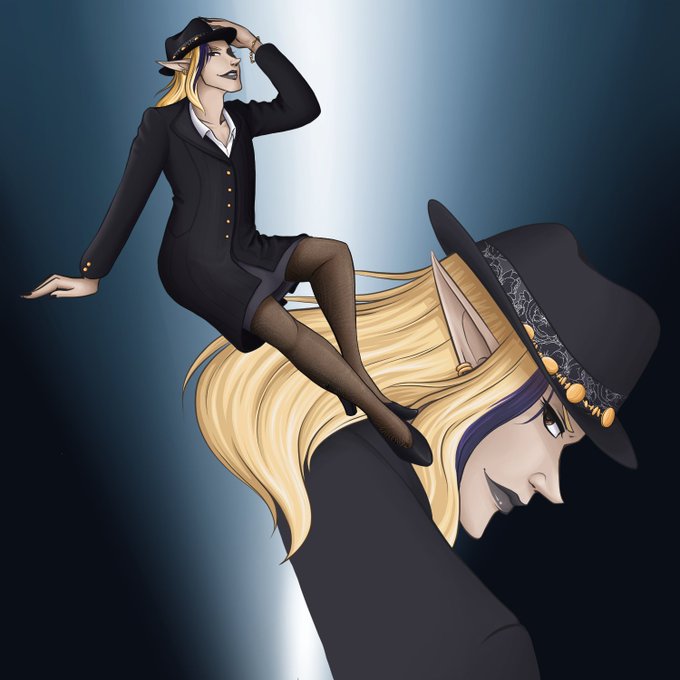 @waschbaerella That's Arell, a fabulous bitchy elf pilot who once worked for spave pirates. He also has a big tendency to fall in love with a lot of people at the same time. He's short tempered and his anger can lead him to violent/cruel things sometimes.