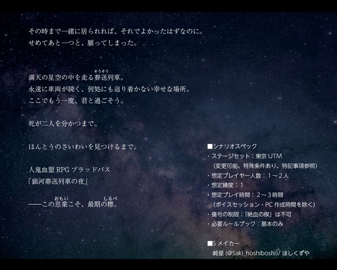 【ブラッドパス】銀河葬送列車の夜 | ほしくずや https://t.co/20MF2VUvD2