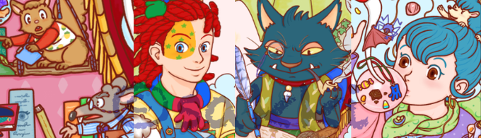 赤いドレッドくんが、おもちゃ職人、他は魔法使いの設定です。自分なりの世界観コテコテですが、気に入ってます。