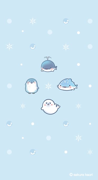 海の生き物大集合…☆ スマホ壁紙風に…☆ #ジンベイザメ #ジンベエザメ #アザラシ #ペンギン #クジラ #スマホ壁紙 #壁紙 #オリジナル #イラスト #創作 #創作イラスト #オリジナルイラスト #irastration