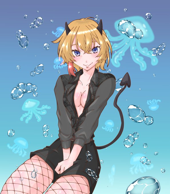 またもや詠いろはさん(@nagami_iroha)描かせて頂きました〜。 今回はデフォルメでございます〜。 そして今回は携帯の壁紙意識したサイズにしてみました。 イメージとしては水族館とかにある、クラゲがいっぱい泳いでる水槽。 #詠いろは