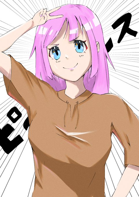 「ピース!!」 毎日ポジティブに過ごす女の子を描きました。 元気に過ごしましょ~ Kamvas13初のイラストです #イラスト #オリジナル