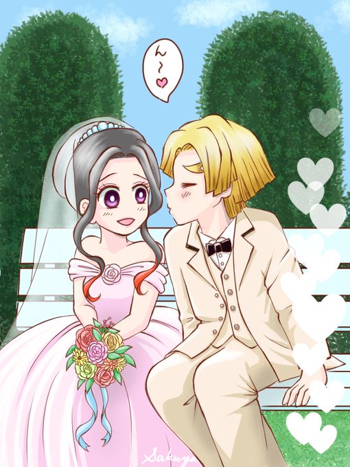#みんなの洋装ぜんねずウェディングが見たい #ぜんねずの日2022 やっと描いた~😅 ちゅうしようとしてる⚡