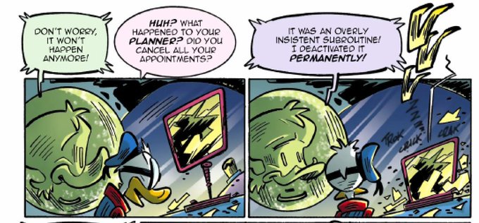 Ducklair.. the worse parental figure, especial for one he doesn't considered his real child) First he tell that believe in you and your decisions and almost believe you can act like human, and then talking about malfunctioning or deactivate you when have no need in you🌚