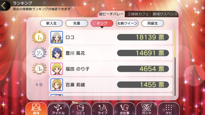 のり子ちゃんが唯一ランクインしてるビーチバレーキングに入れるしかない… ミリシタの投票って常にランキング確認出来ちゃうんだよね…この仕様はどうかと思う、あまりにも投票差があると萎える