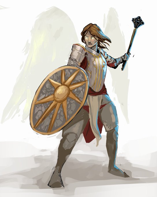 We finished an almost year-long D&D campaign and the great @CCampbellArt painted our party!! This was my cleric 🥰🥰