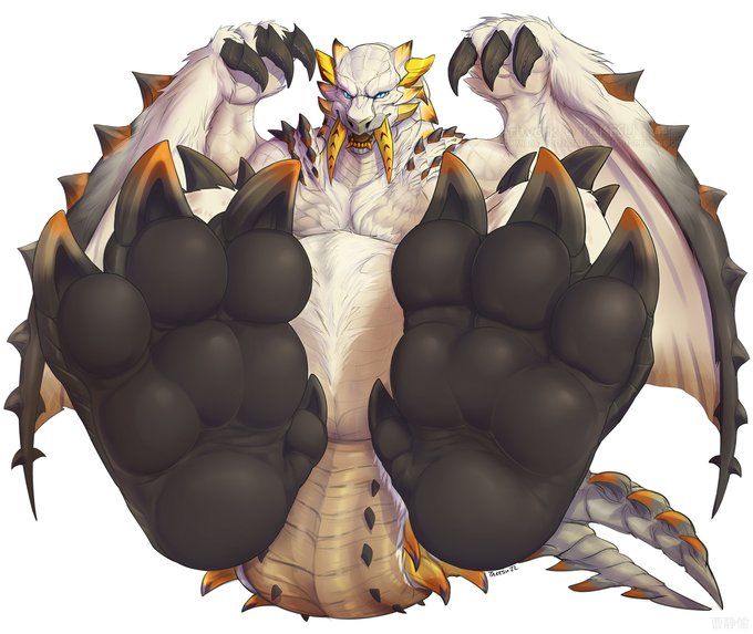 "You want to see my feet? That's quite a peculiar request, however *leans back and raises both of my massive feet* here you go"