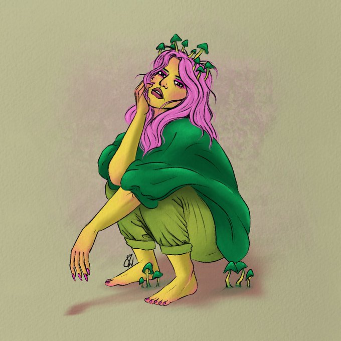This one isn’t very obvious on the fungi influence but it was fun to draw. Poisonous Cortinarius iodes.