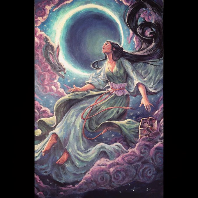 Happy lunar new year🧧 !! Wanted to share one of my favorite pieces I’ve painted in recent years, of the Chinese moon goddess Chang E - hope you’re all enjoying your mooncakes and red envelopes full of lucky money!! #lunarnewyear #chinesenewyear #acrylicpainting