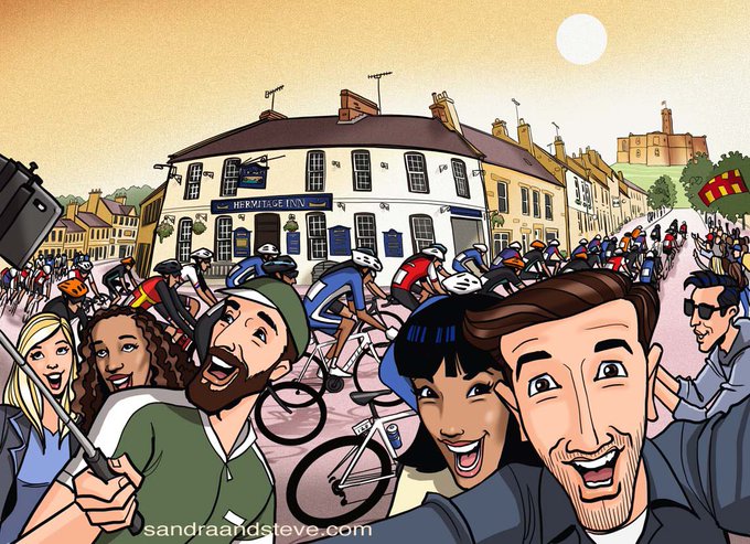 @TheNoisyPencil We finally printed A5 cards of the designs below, ahead of the @TourofBritain, which starts tomorrow! On Monday, Stage 3, the cyclists will ride through #Northumberland & #NorthofTyneTOB . Here’s hoping people like the #cyclingillustration s.