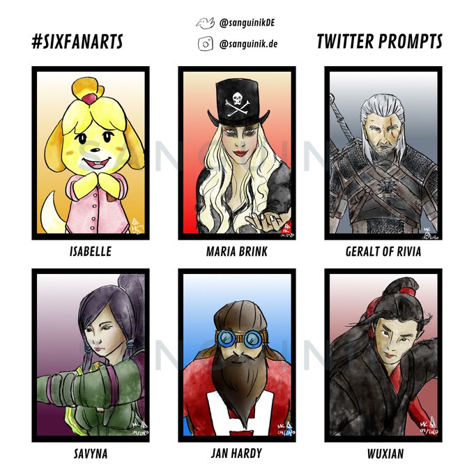 Eure Wünsche für die #sixfanarts Challenge von @mcapriglioneart sind fertig! 😁 Das war ein Spaß! Eine zweite Runde ist schon mit Vorschlägen von Instagram in Planung. #SixFanartsChallenge