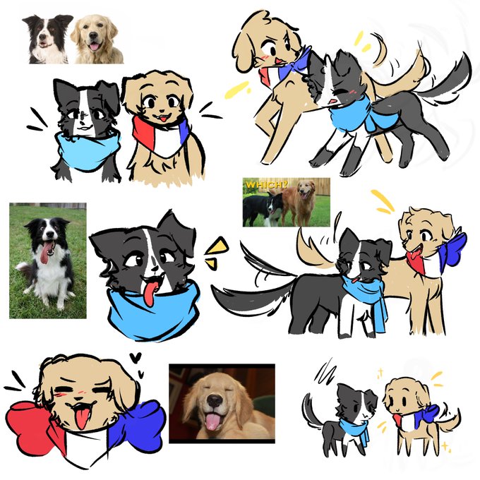 changed the pupper's design a bit :) the dogs breed are Border Collie and Golden Retriever !! i had a blast just drawing dogs for an hour or so