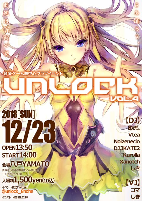 【いよいよ明日】八戸の音ゲークラブイベント「UNLOCK」。一時は台風によって延期を余儀なくされましたが、遂に明日14時からYAMATOにて決行!