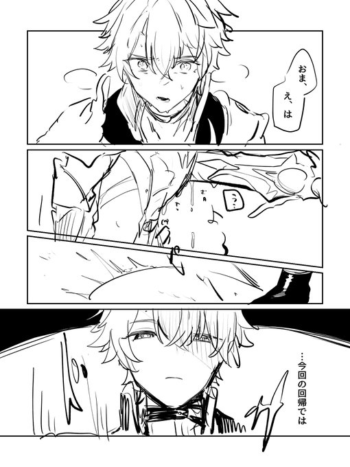 深夜なのでこの落書き載せちゃお🎶🎶 この漫画のセルフ解釈幻覚強めの3.4の内容含むやつ(流血ある) https://t.co/j9y4hrxKoL