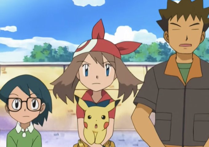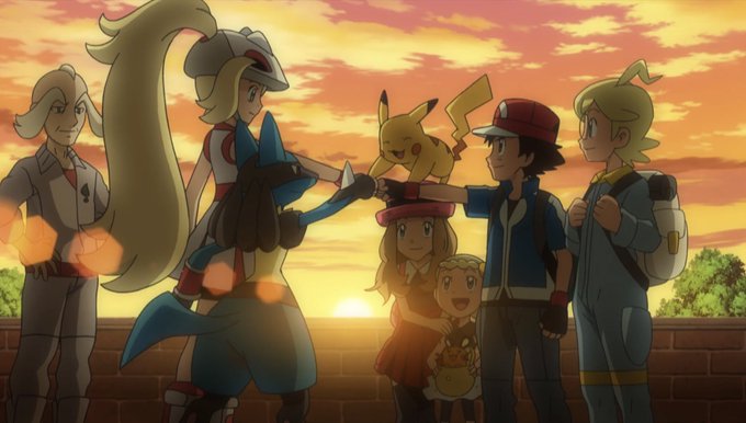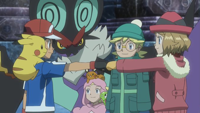 This is just great, I love it when the companions hold Pikachu for Ash ^^ (AG149: Wheel of Frontier) #anipoke #pokemon