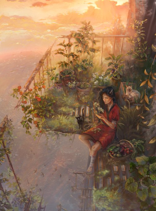 New artwork!✨ These days I needed to draw something calming and peaceful. I found a very beautiful photo and used it to study light and color.
