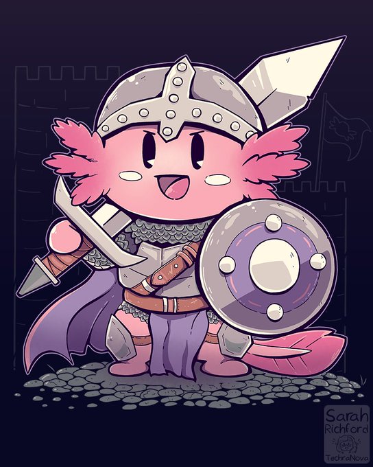 Have some random knight axolotl art because I miscalculated a pun so I'm sticking with some cute character design stuff :)