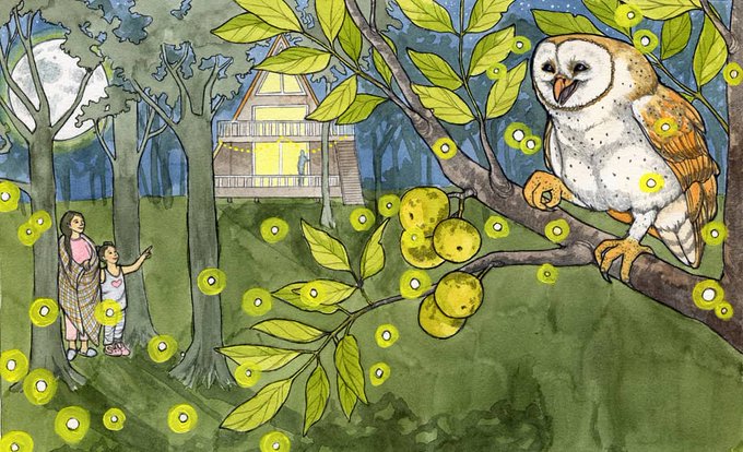 The owl that I shared a couple weeks ago was part of a larger illustration. Have you seen any owls this summer? .