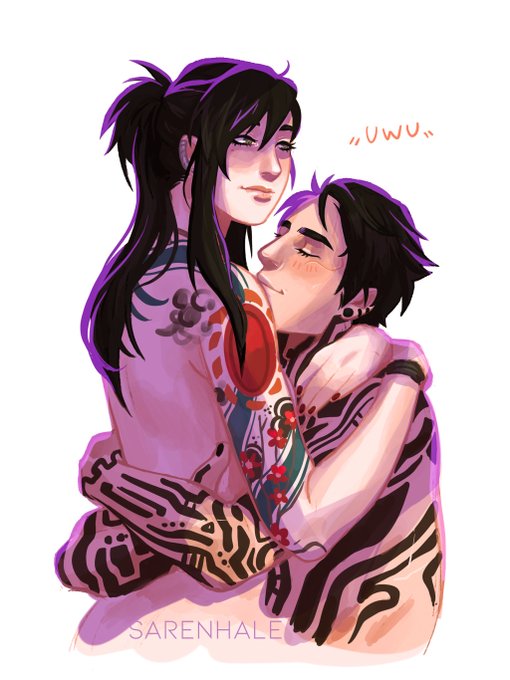 I don’t think of this as explicit, so I hope it's ok for y'all to see! A little drawing of my character Mana and Icarus being cute... the more I look at Icarus' UWU face the more I feel at peace with the world 🥰