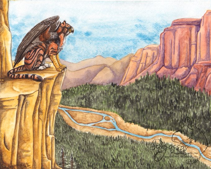 Commission for Riley, @Mythimorph of her awesome gryphon, Topaz, chillin out in high places. Glad I got the chance to paint this critter! Thanks, Riley!