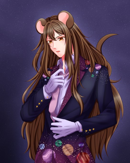 One of the 24 hour goals was to get art of me in a "Space theme-ed suit", and that goal was blown out of the water, so here we have some #BigSqkArt made by @yuzuhikayusume , of a mouse, and his discomfort in suits!