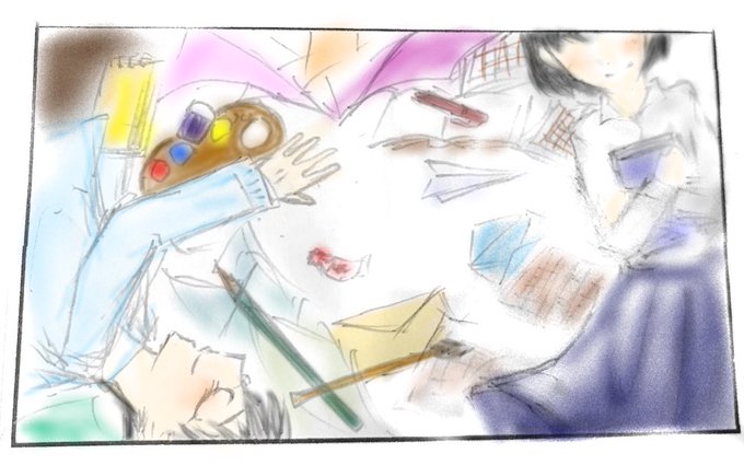 水彩画風のやつかけたー =͟͟͞͞( ๑`・ω・´) 水彩色鉛筆ってすげぇ (*´・ω・)(・ω・`*)ナ-