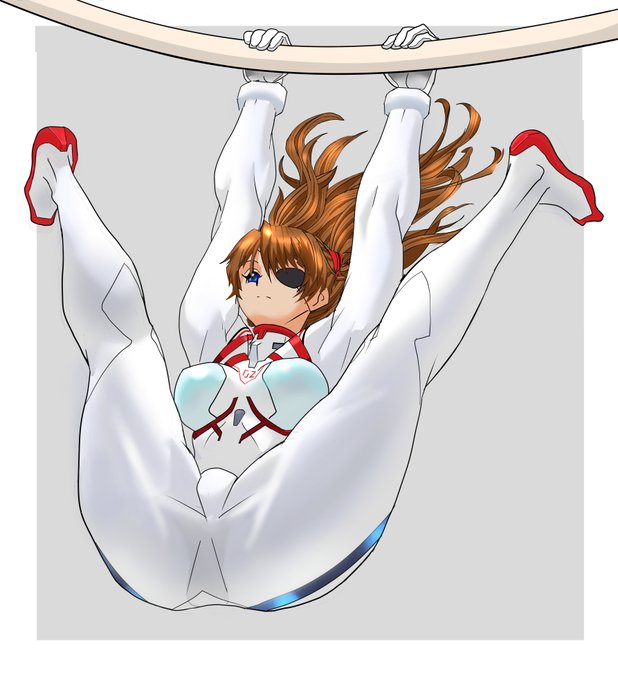 顔以外肌が露出していないので健全であり、青少年もご安心なプラグスーツで器械体操シリーズ、アスカに加えて真希波さんも参加して4枚になりました~。
