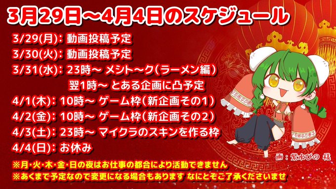 スケジュール(3/29~4/4)を更新しました❗️