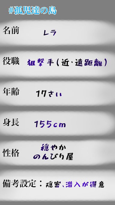 参加失礼します👏👏 素敵な企画ありがとう!!!! テンプレお借りしました🙏 服がちょっと皆様と比べて現代寄りなのは目を瞑ってください😖😖 #孤児達の島