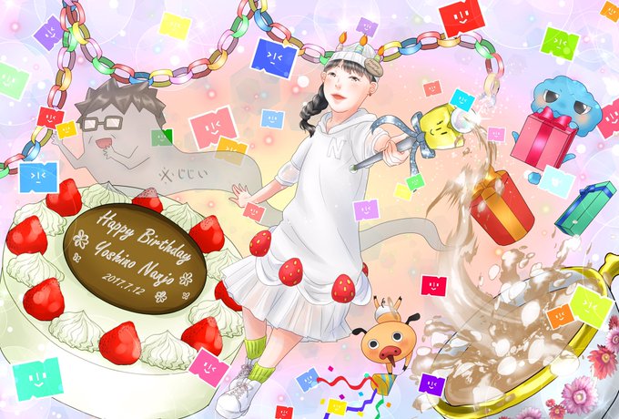 初めて描いたバースデーイラストと見比べてみたら無意識にめっちゃ原点回帰してた。