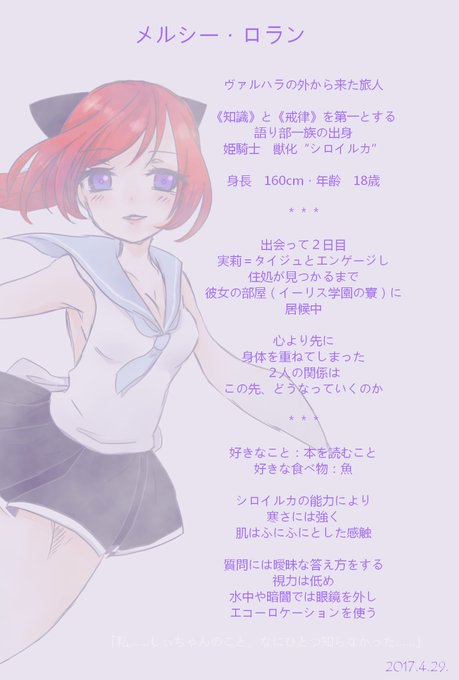 @yurikiss_TL 作品が進んだので、メルシーのキャラシを更新しました。シロイルカの獣化能力をもった旅人。パートナーである実莉ちゃんとの交流はまだまだ進んでいきます…