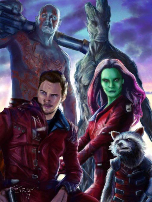 My painting I did last year of @Guardians @DaveBautista @prattprattpratt @zoesaldana Vin Diesel and Bradley Cooper