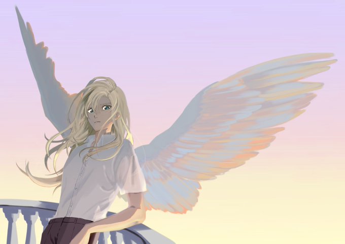 夕暮れを天使と #イラスト #創作
