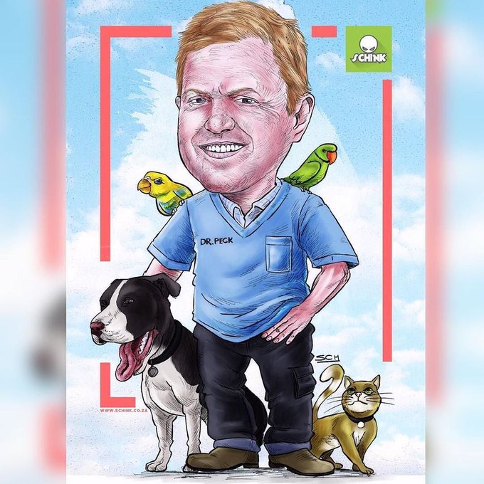 An awesome animal lover and great vet, Dr Peck, in this artwork gifted to him by his customers and animal patients.