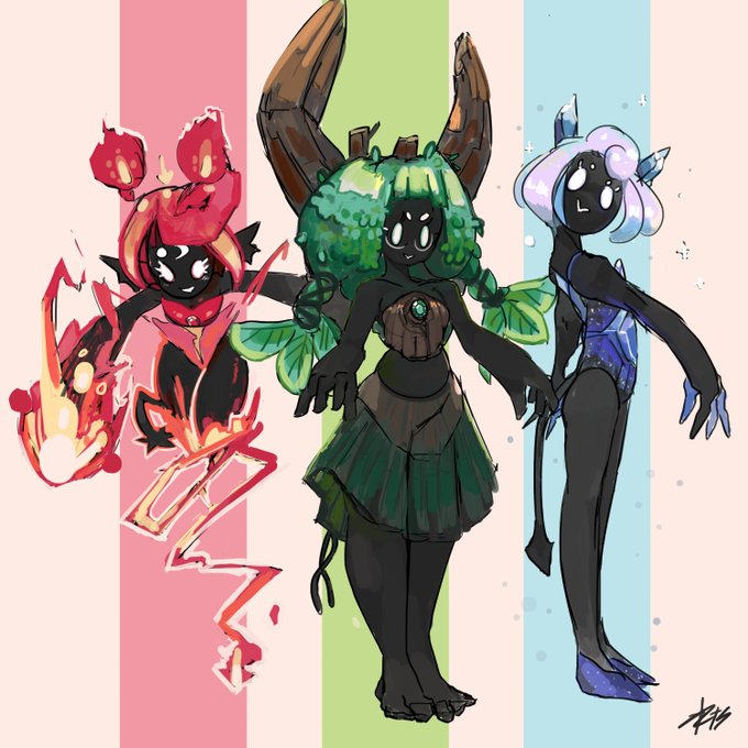 🌿☕️Made Instagram classmate @ricemonkeh ‘s gem demons #drawthisinyourstyle for their #Rice4k !! I kinda saw them as elementals