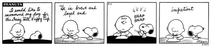 🐾 A little Snoopy humor for your #NationalPuppyDay. 🖋️ This Peanuts strip was first published on March 3, 1973.