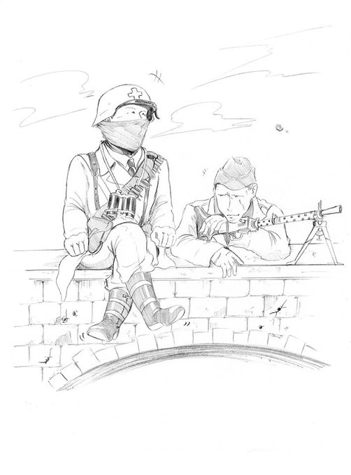 セリフ描かなかったけどやっぱ書いときたいので再…。 分隊長:『何だ!食わないのかッ?!』 ギュンター:『最後に取っておいたんだよ!俺のヴルスト返せ!!』 ザニ:『ペーター、僕のヴルストあげる』
