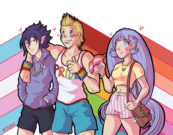 My first pride piece for 2021! This will be part of a series of all of my bnha headcanons, but of course I had to start with the big 3.