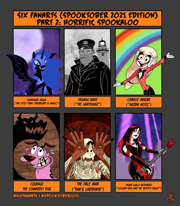 All of my #Spooktober2021 drawings. I had so much fun doing these this year; Halloween always jumpstarts my creative drive 🎃🎨🖼🖤☺ #spookyfanarts #fanart #SixFanarts #icons #pinups #characterdesign #styleexperiment #halloweenart #HappyHalloween2021