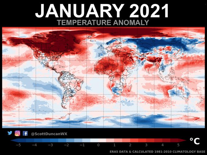 This was January on its own. Cold building in Russia, remarkable warmth in Canada and Arctic. North Africa and Tibet notably warm/hot.