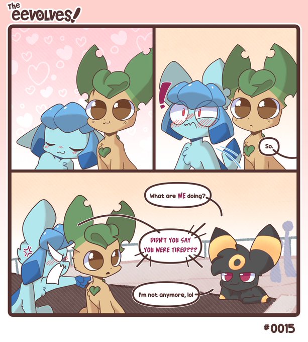 I love how Leafeon is just staring into space as Glaceon cuddles him. Mr. No thoughts, head empty