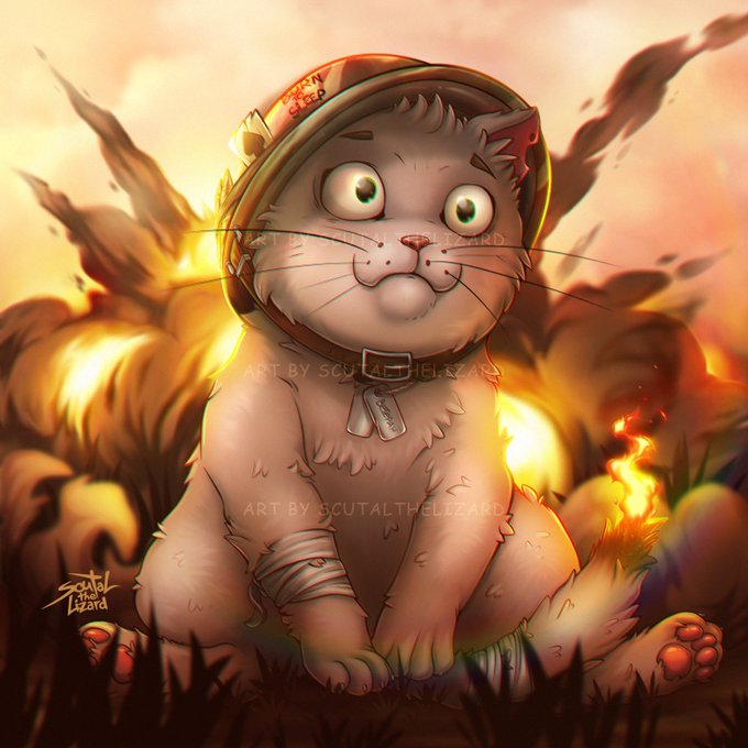 Completed commission icon for my friend. Fearless battle kitten ready to guard his accounts. 💥🐱🛡️