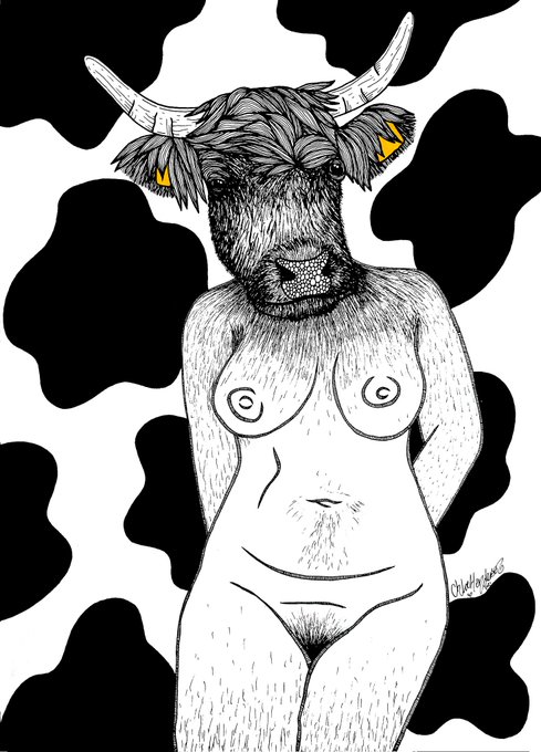 I'm so excited to have my Cow Woman illustration featured in The Body Alternative exhibition at @bluntknifeco alongside a fantastic line-up of artists - including my CoinOp bestie @TheKatieMcCann 💖 Check out the link in my bio to come visit the show opening on the 7th April 🤩