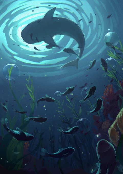 Whoa, this is doing numbers - here's some more underwater art, by @vireosy, Kuosa J (https://t.co/Yjwos5EACO), @purblegibbycat and @pockles4nockles 👀